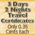 I wanted to let you know about our company. We sell 3 day 2 night travel certificates that are used by many companies as incentives. The cost is only 0.35 cents each and they come with your company name and website imprinted oneach certificates.